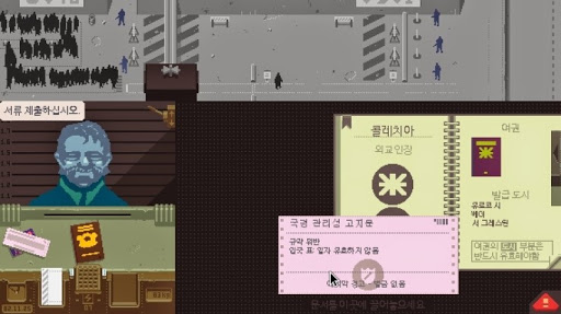 가상의 공산주의 국가인 아스토츠카에서 그레스틴 국경지대의 검문소 심사관으로 발령받은 주인공이 국경을 통과하려는 내국인 혹은 외국인이 제출하는 서류를 심사하여 입국 허가 여부를 결정하는 게임입니다. 게임을 진행하며 날짜가 지날 때마다 통과 가이드라인이 추가됩니다. 확인해야하는 사항들이 많아지는 것이죠. 가이드라인에 맞지 않는 사람을 통과시키면 패널티를 받습니다. 심사를 많이 할수록 임금을 많이 받을 수 있고, 임금을 통해 가족들의 난방비, 식비, 거주비 등을 해결해야합니다. 난방비를 지불하지 않으면 가족들의 감기 수치가 1 증가하고, 난방비를 지불하면 1 감소합니다. 식비는 가족들의 굶주림 수치를 1 올리거나 낮춥니다. 굶주림 수치와 감기 수치는 가족들의 아픔 수치에 영향을 주며, 아픔수치가 한계치에 도달하면 해당 가족은 사망하게 됩니다. 가족들이 모두 사망하면 배드엔딩.