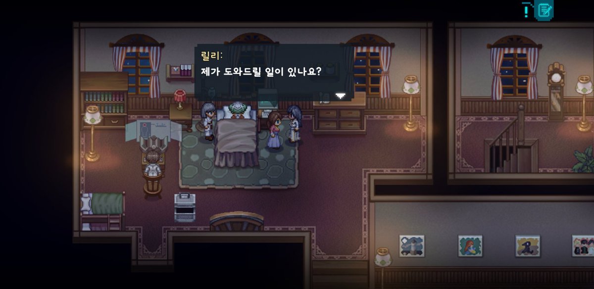 단서와 주어지는 장면들을 통해 스토리를 유추해나가는 방식이기 때문에 게임에 더욱 몰입할 수 있게 해줍니다. 이것도 마찬가지로 도트게임이 주는 따뜻한 느낌과 스토리의 조화가 게임에 더욱 빠져들게 해줍니다.