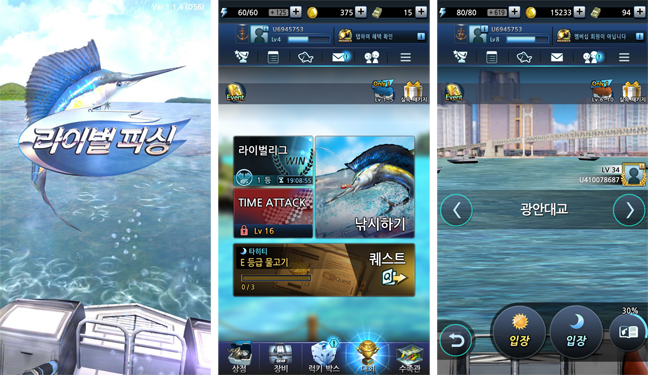 피싱마스터 또한 대표적인 모바일 낚시게임인데, 2012년 3월 게임빌의 자체 개발 낚시게임으로 처음 시장에 등장했다가 지난해에 시즌5를 오픈하면서 그 흥행 실적을 이어나가고 있습니다. 실제와 흡사한 게임성이 특징인데, 스마트폰의 틸트 기능을 이용해 찌를 던지는 조작 등이 그 예시입니다.